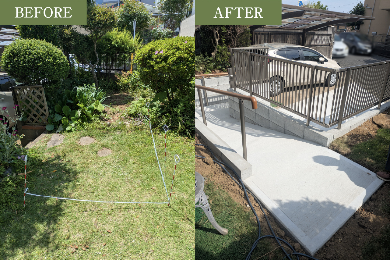 車いすを利用されているご家族が使いやすいようにと、スロープの新設工事を行いました。
